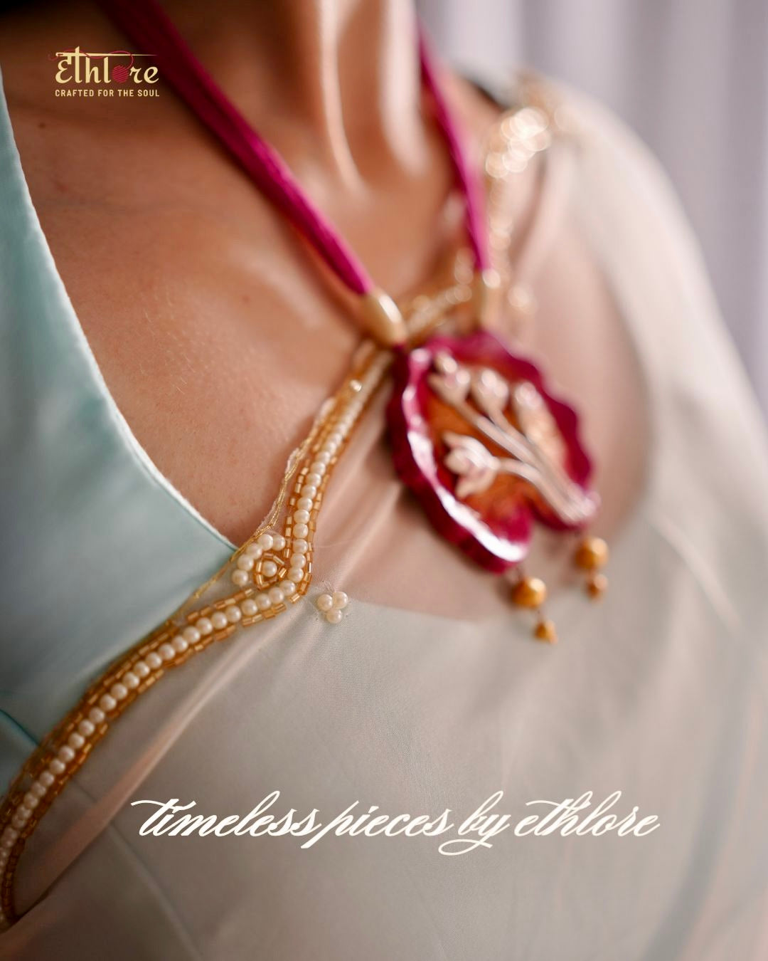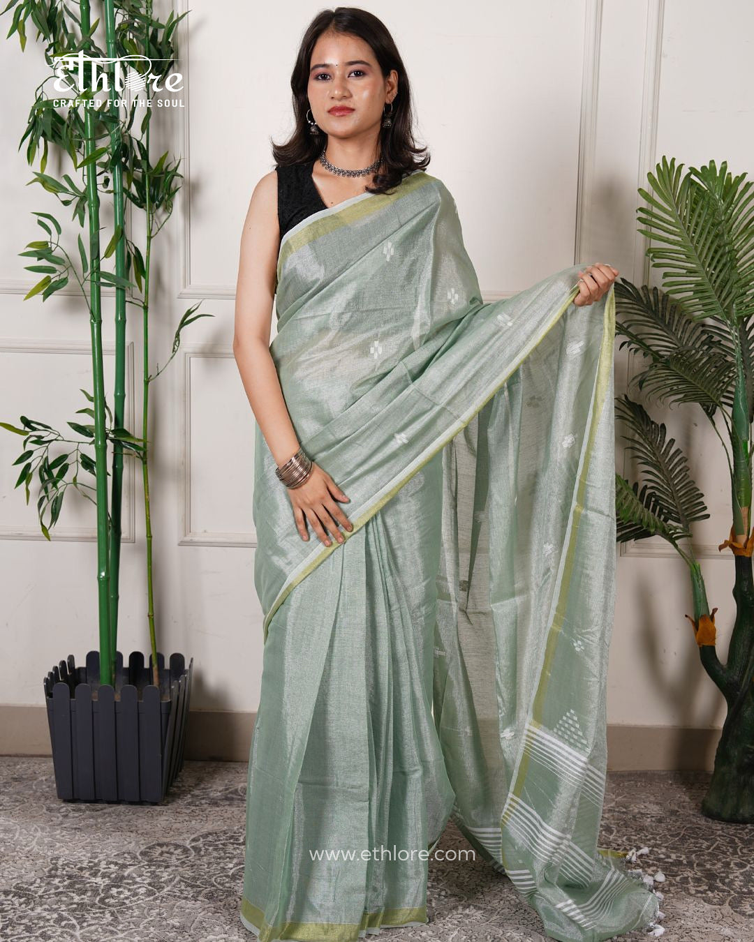 The idea of Ethlore began in the middle of a simple conversation at home, one of those afternoons when sarees came out of old cupboards, each wrapped in soft muslin, each holding a memory. Some had faint stains from wedding feasts, some carried the scent of sandalwood drawers, and others were remembered only by the person who once wore them. As the folds were opened, what stood out wasn’t just the fabric, it was the silence that came with them. The kind of silence that feels full of love, of time, of legacy. That’s when it struck us: sarees are not just clothes. They’re stories. And in today’s fast world, where everything is machine-made and rushed, we wanted to slow things down and bring back what mattered, something real, something made by hand, something that lasts. Ethlore was created to honour that feeling. Every saree we offer is handcrafted by skilled artisans from across India. Through their hands, old crafts find new life and with every drape, you carry forward a piece of culture, a piece of soul.